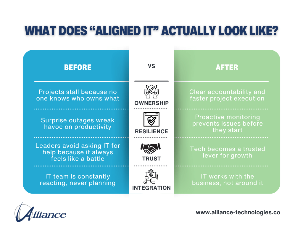 The truth is, IT can be a driver of growth—but only when it’s aligned with the business strategy. And alignment isn’t about buying the flashiest tools. It’s about ensuring: